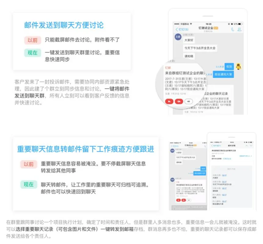 SaaS服務(wù)模式,分布式系統(tǒng)架構(gòu),精高端用戶(hù)體驗(yàn),多終端集成,打造釘釘一站式辦公! 與釘釘無(wú)縫集成,實(shí)現(xiàn)管理同步、用戶(hù)同步、一鍵收發(fā)、郵件穿透、搜索檢索等…