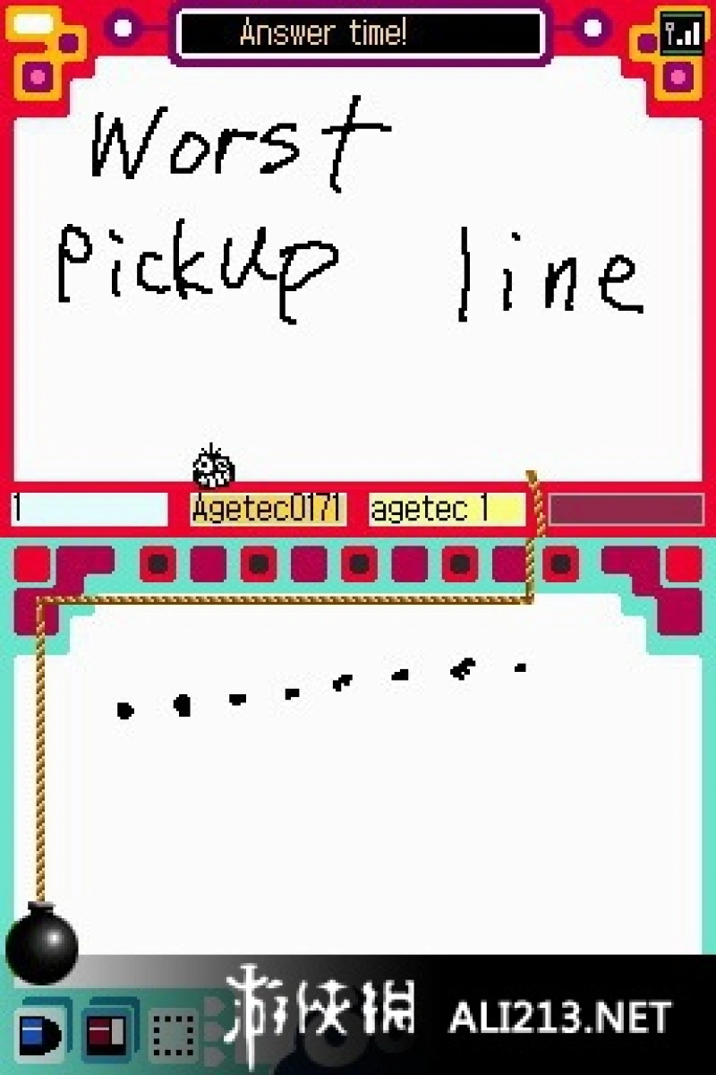 《アルキメ DS》是一款以“幽默&歡笑”為主題的交流軟件。本作一個(gè)人是無(wú)法玩的,是對(duì)應(yīng)從2人到4人的專(zhuān)用游戲,但是對(duì)應(yīng)DOWNPLAY所以一張卡帶也可以游戲。游戲的過(guò)程就像日本電視上常有的智力問(wèn)答節(jié)目一樣進(jìn)行。首先決定一個(gè)出題者,其他人都是解決問(wèn)題的人。出題者出的問(wèn)題會(huì)顯示到其他玩家的DS上。然后在出題者設(shè)定的時(shí)間內(nèi),其他玩家傳送答案到出題者的DS上,出題者根據(jù)回答問(wèn)題的先后以有趣程度進(jìn)行評(píng)分。除此之外還有多種有趣的玩法,就要靠大家自己發(fā)揮想象力去發(fā)掘了。