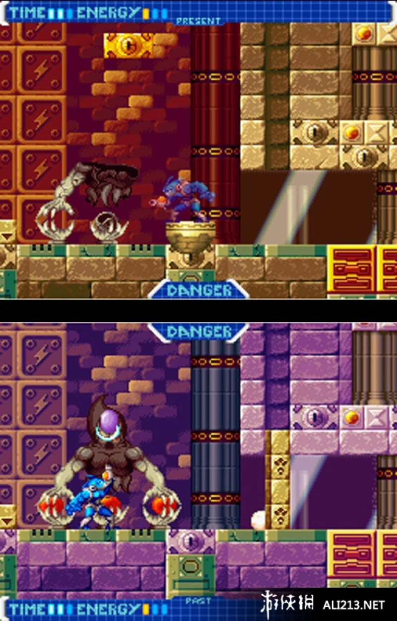 《時空雙子》是一款特別的動作游戲,游戲中玩家需要同時控制上下兩個屏幕中的兩個角色,因為兩個主角處于不同的時空之內(nèi),所以環(huán)境會有很大的區(qū)別,這就要求玩家仔細(xì)地對兩個屏幕中的環(huán)境進(jìn)行觀察,之后作出合理的選擇。